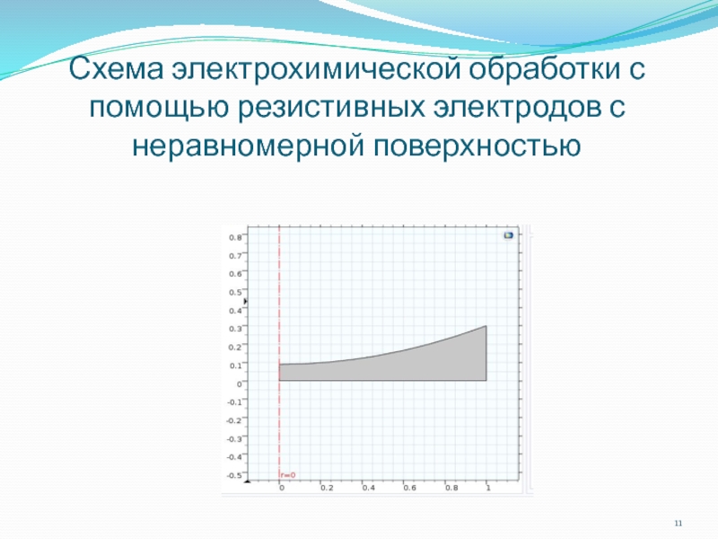 Слайд 11Схема электрохимической обработки с помощью резистивных электродов с неравномерной поверхностью