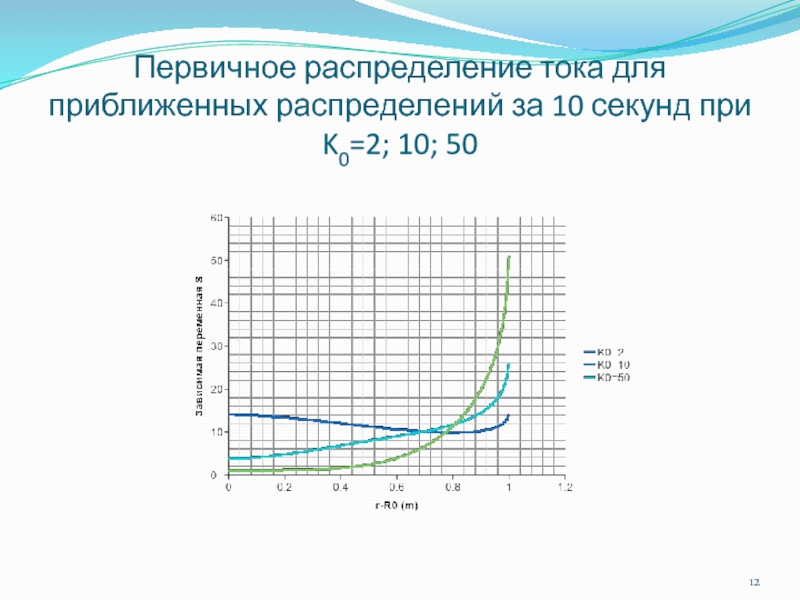 Слайд 12Первичное распределение тока для приближенных распределений за 10 секунд при K0=2;