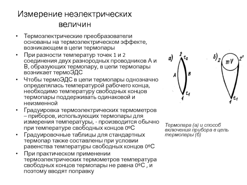 Термоэлектрические преобразователи основаны на термоэлектрическом эффекте, возникающем в цепи