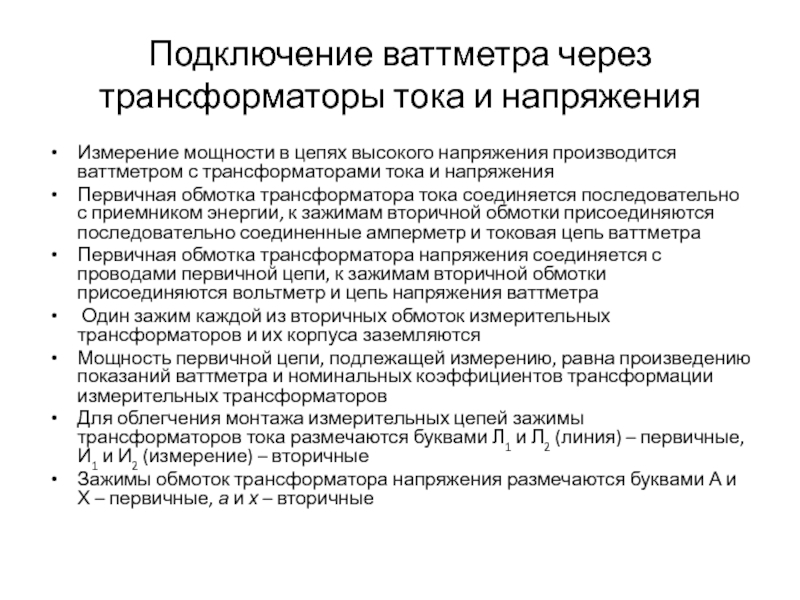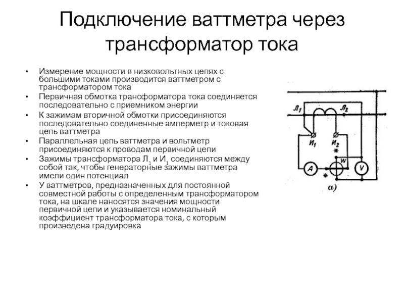 Подключение ваттметров через измерительные трансформаторы тока и напряжения. Определение пределов измерения.