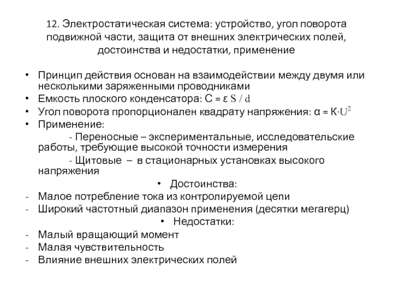 Электростатическая система: устройство, угол поворота подвижной части, защита от внешних