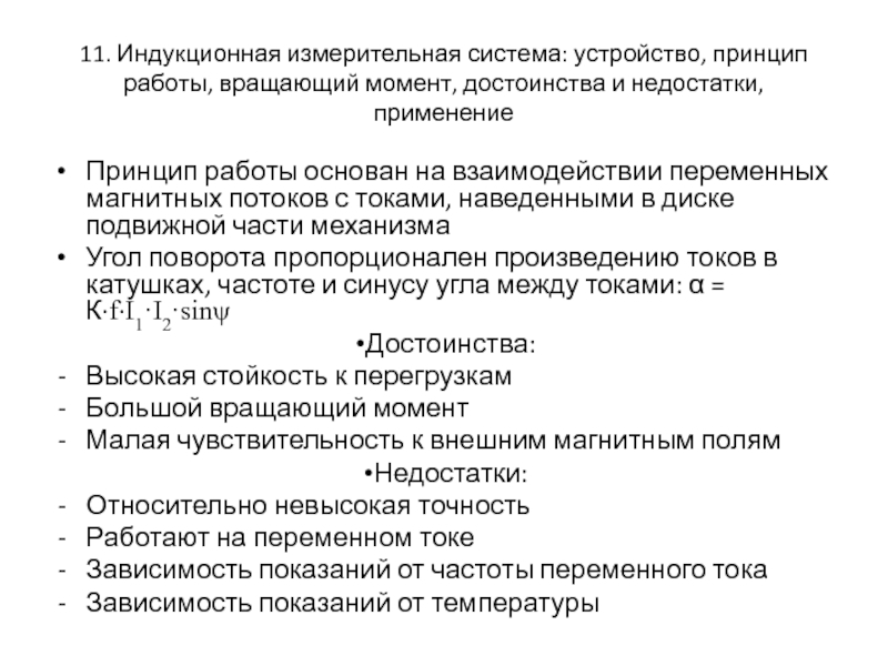 Индукционная измерительная система: устройство, принцип работы, вращающий момент, достоинства и недостатки, применение.