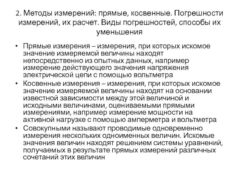 Слайд 82. Методы измерений: прямые, косвенные. Погрешности измерений, их расчет. Виды погрешностей,