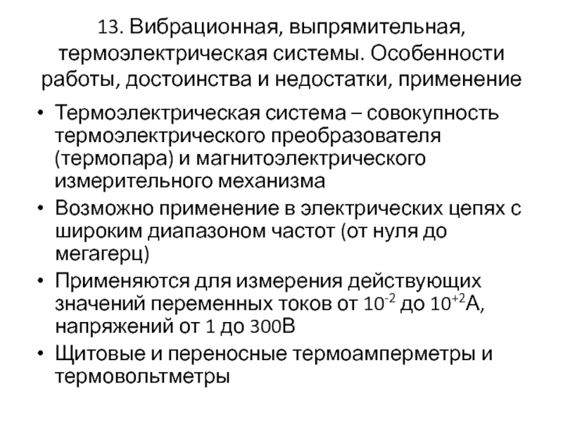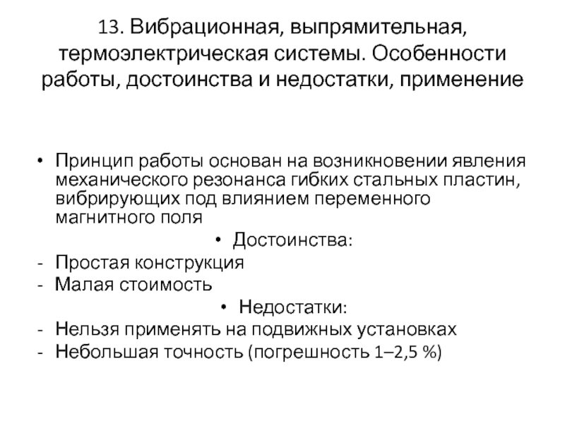 Вибрационная, выпрямительная, термоэлектрическая системы. Особенности работы, достоинства и недостатки, применение.