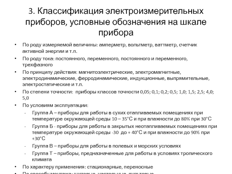 Слайд 123. Классификация электроизмерительных приборов, условные обозначения на шкале прибора