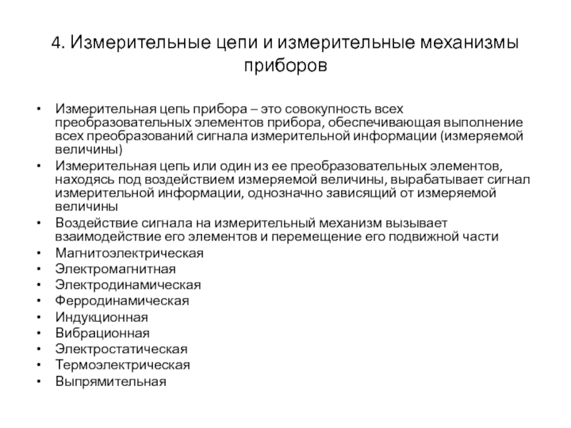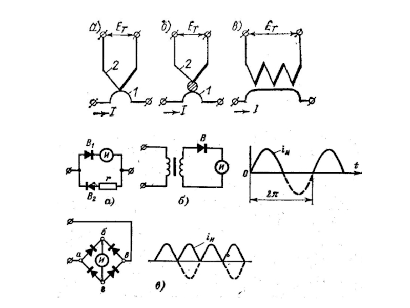 По принципу действия: магнитоэлектрические, электромагнитные, электродинамические, ферродинамические, индукционные, выпрямительные, электростатические и т.п.