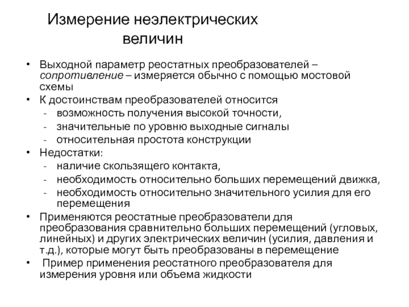 Виды параметрических преобразователей: реостатные, угольные, терморезисторы и др. Принцип работы, применение