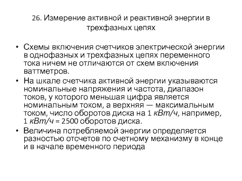 Измерение активной и реактивной энергии в трехфазных цепях.
