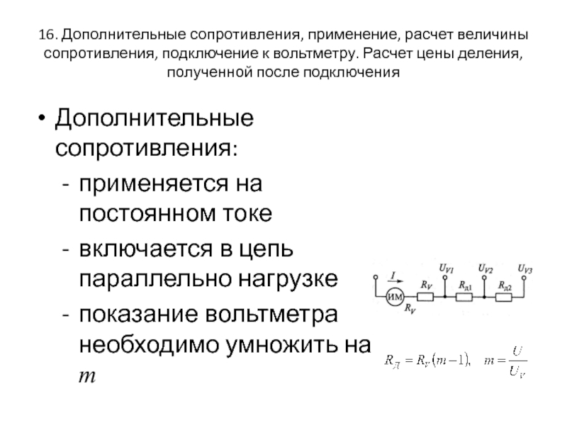 Дополнительные сопротивления, применение, расчет величины сопротивления, подключение к вольтметру. Расчет