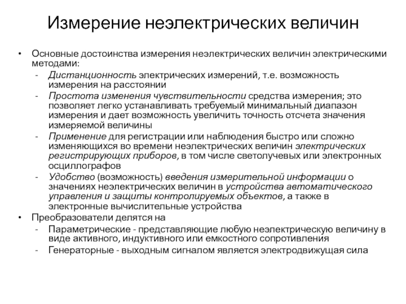 Недостаток – ограниченный частотный диапазон измеряемых величин