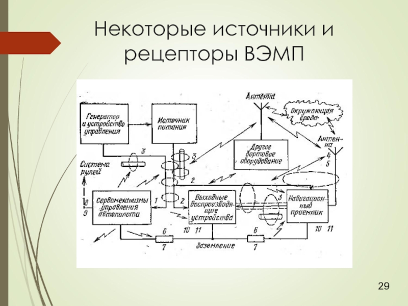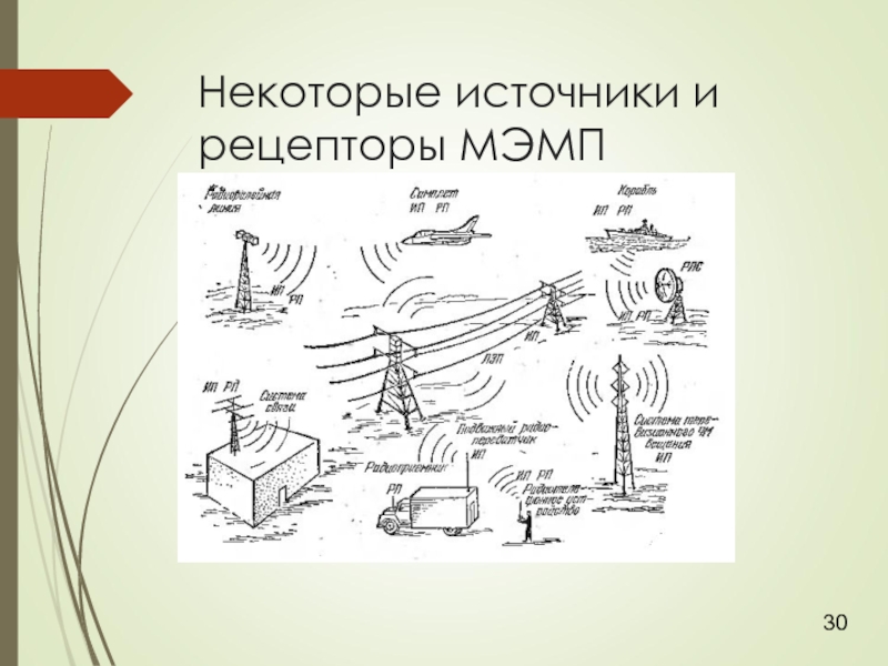 Слайд 30Некоторые источники и рецепторы МЭМП