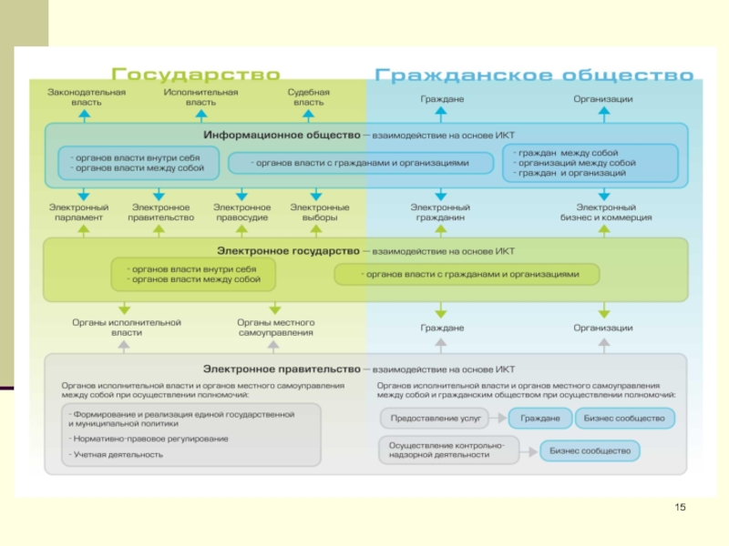 Между различными ветвями государственной власти (G2G, Government-to-Government);