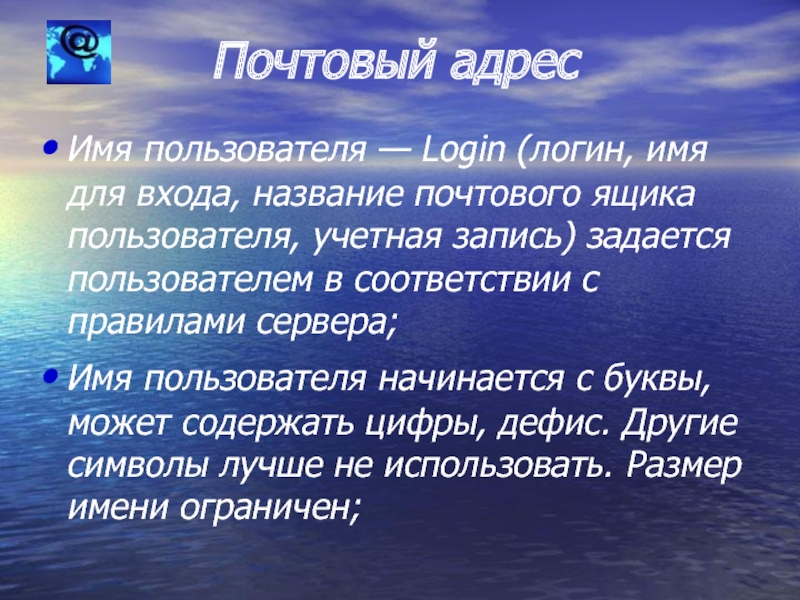 Имя пользователя — Login (логин, имя для входа, название почтового