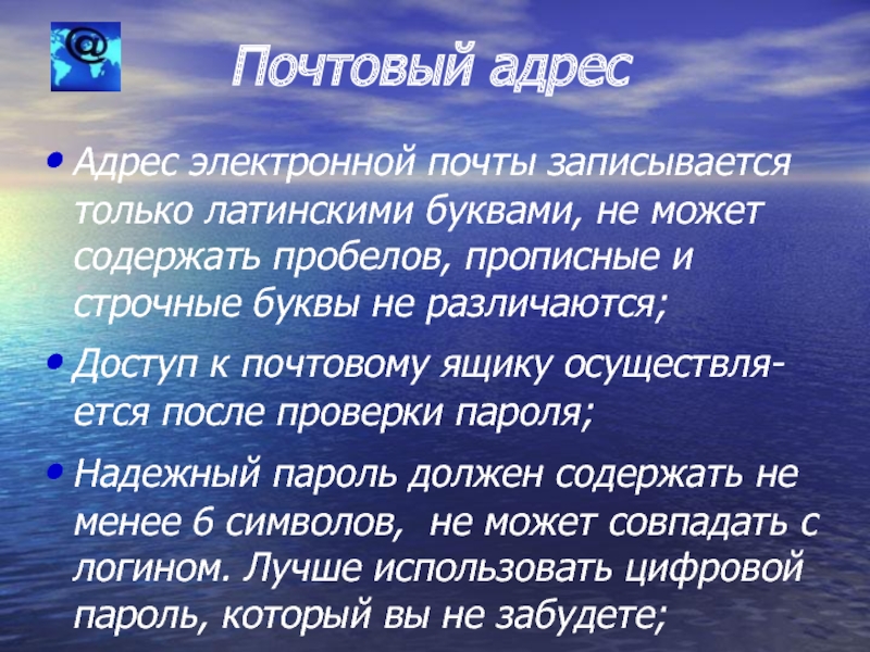Доступ к почтовому ящику осуществля-ется после проверки пароля;
