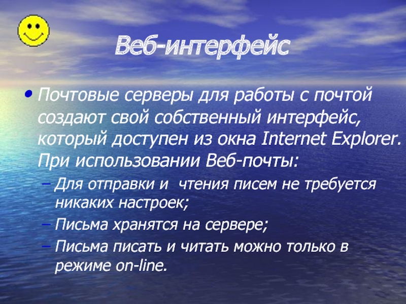 Почтовые серверы для работы с почтой создают свой собственный интерфейс,