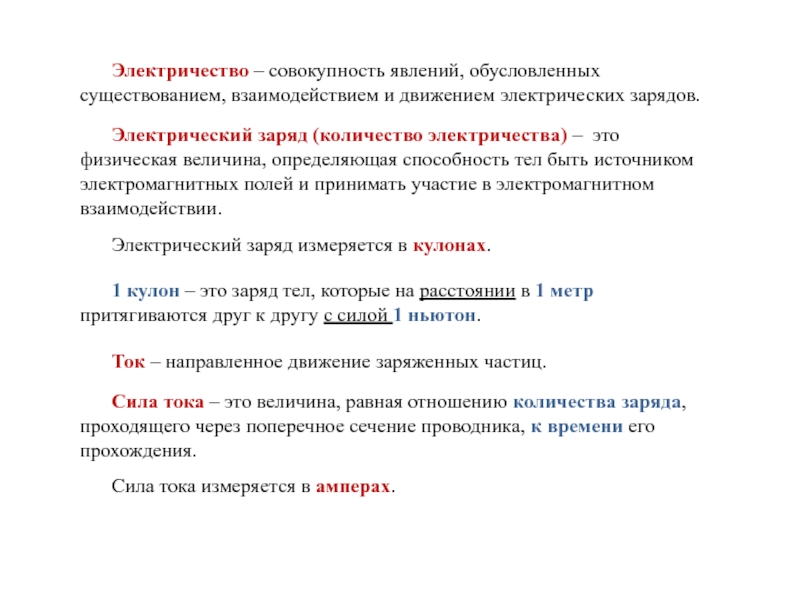 Сила тока – это величина, равная отношению количества заряда, проходящего через поперечное сечение проводника, к времени его прохождения.