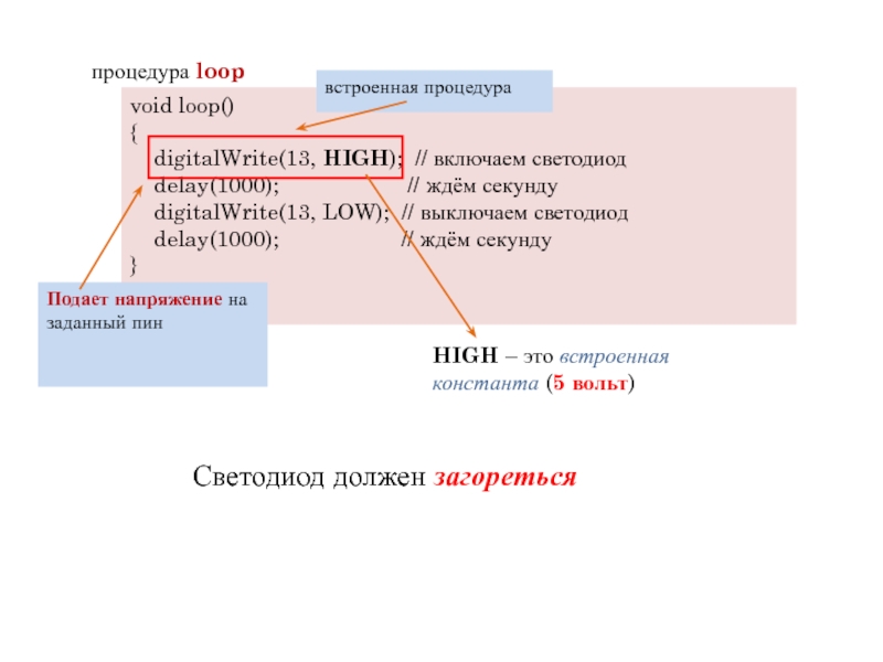(выход, т.е. будет передаваться сигнал на светодиод)