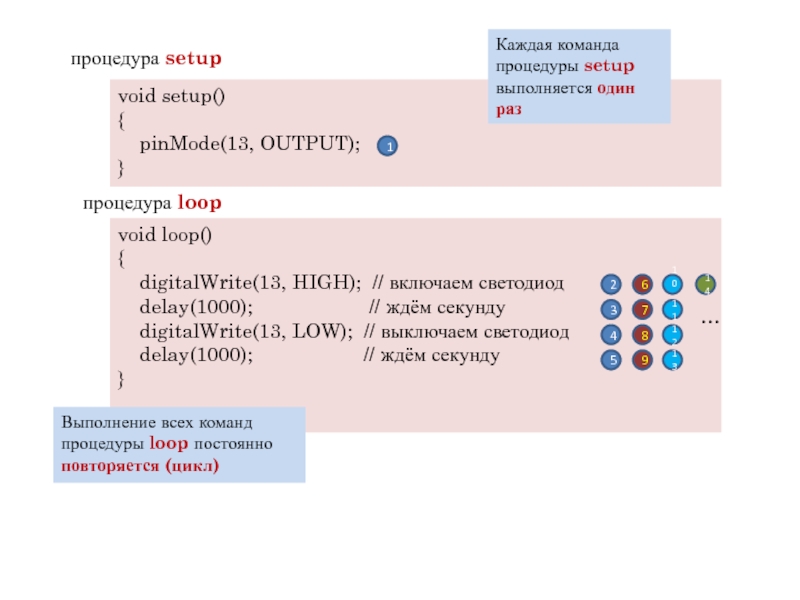 Выполнение всех команд процедуры loop постоянно повторяется (цикл)