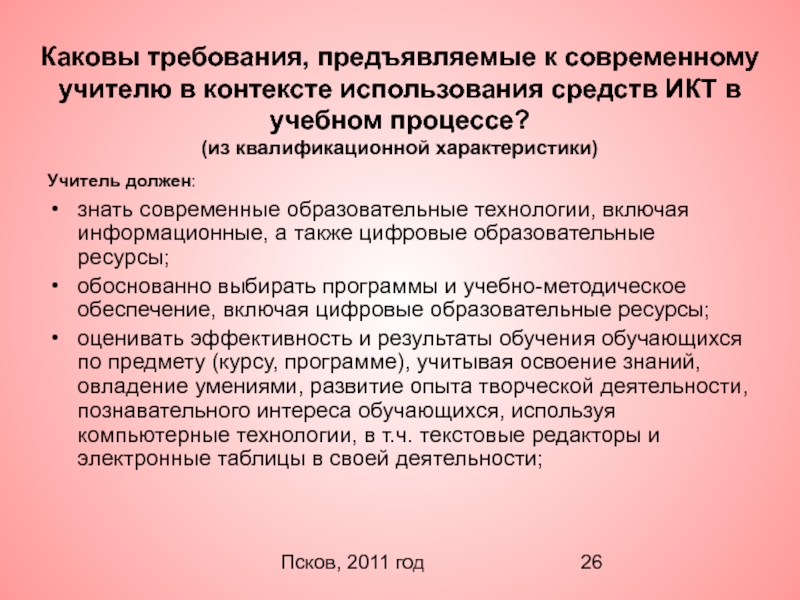 Каковы требования, предъявляемые к современному учителю в контексте использования