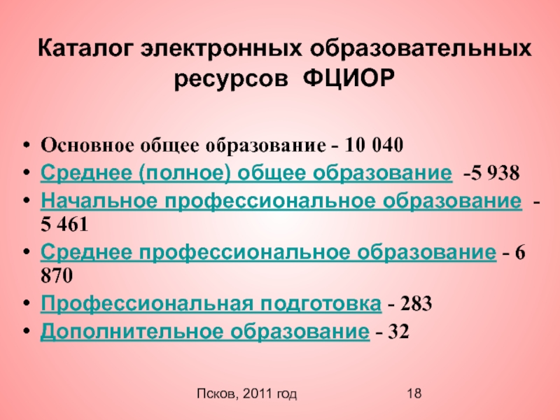 по составляющим входящего контента – лекционные ресурсы, практические ресурсы, ресурсы-имитаторы (тренажеры), контрольно-измерительные материалы