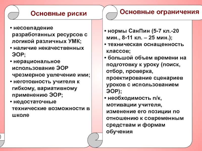 неготовность учителя к гибкому, вариативному применению ЭОР;
