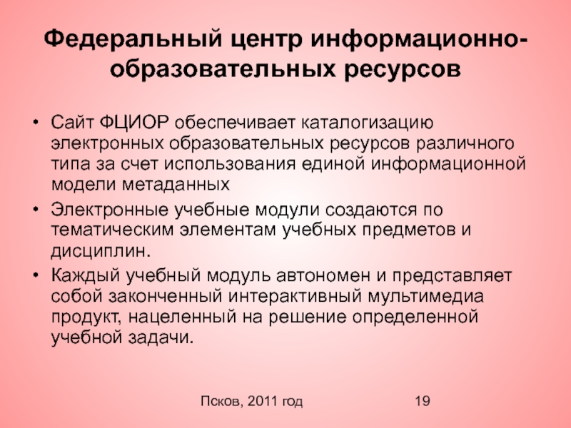 Каждый учебный модуль автономен и представляет собой законченный интерактивный мультимедиа продукт, нацеленный на решение определенной учебной задачи.