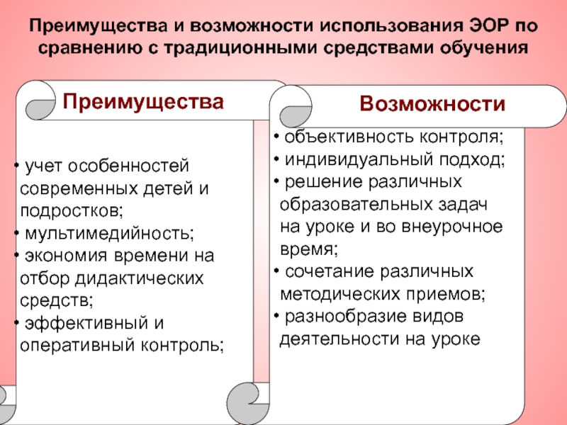 Преимущества и возможности использования ЭОР по сравнению с традиционными