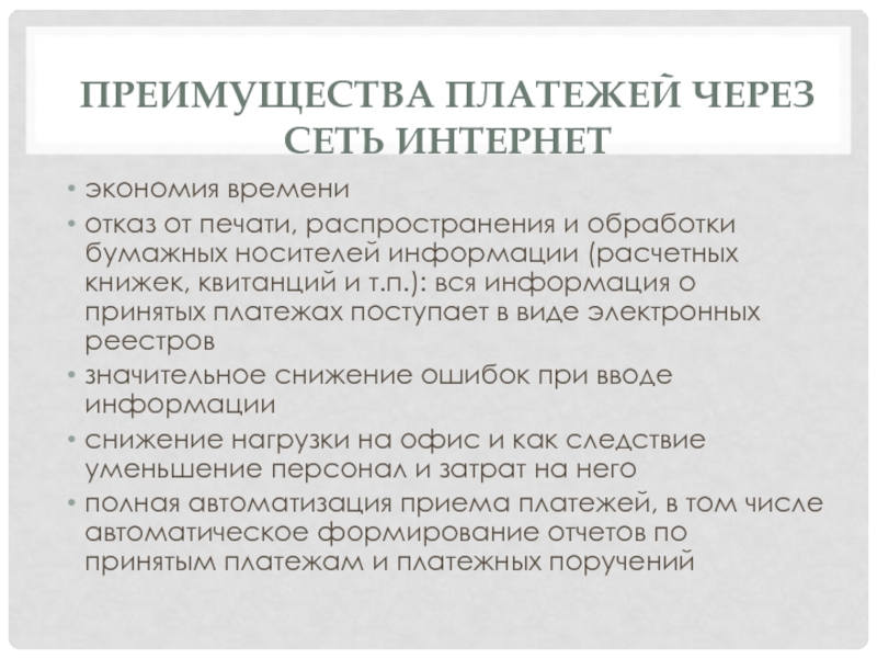 Слайд 17ПРЕИМУЩЕСТВА ПЛАТЕЖЕЙ ЧЕРЕЗ СЕТЬ ИНТЕРНЕТ