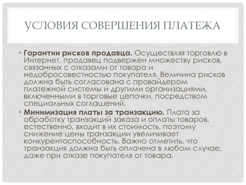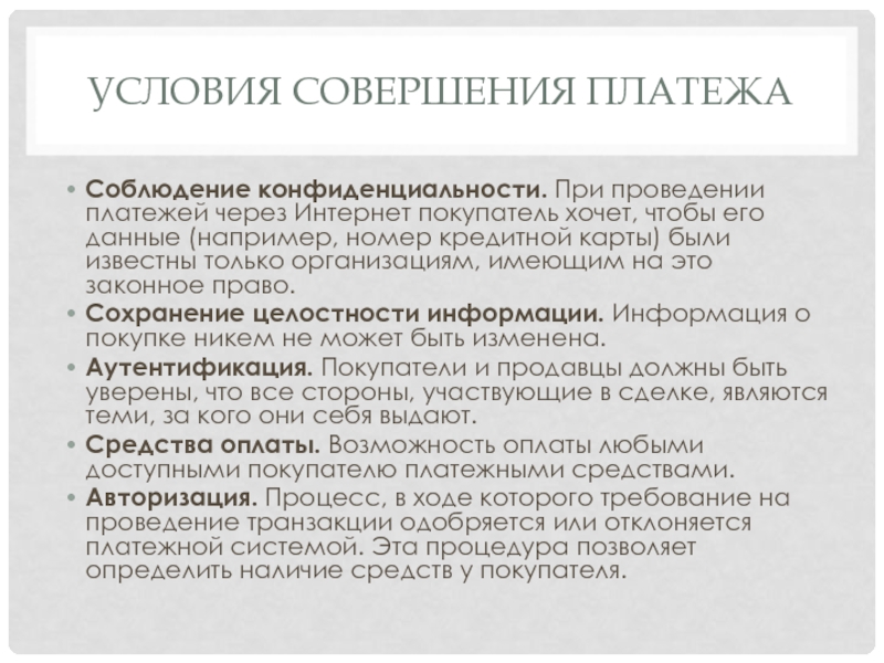 Слайд 8УСЛОВИЯ СОВЕРШЕНИЯ ПЛАТЕЖА