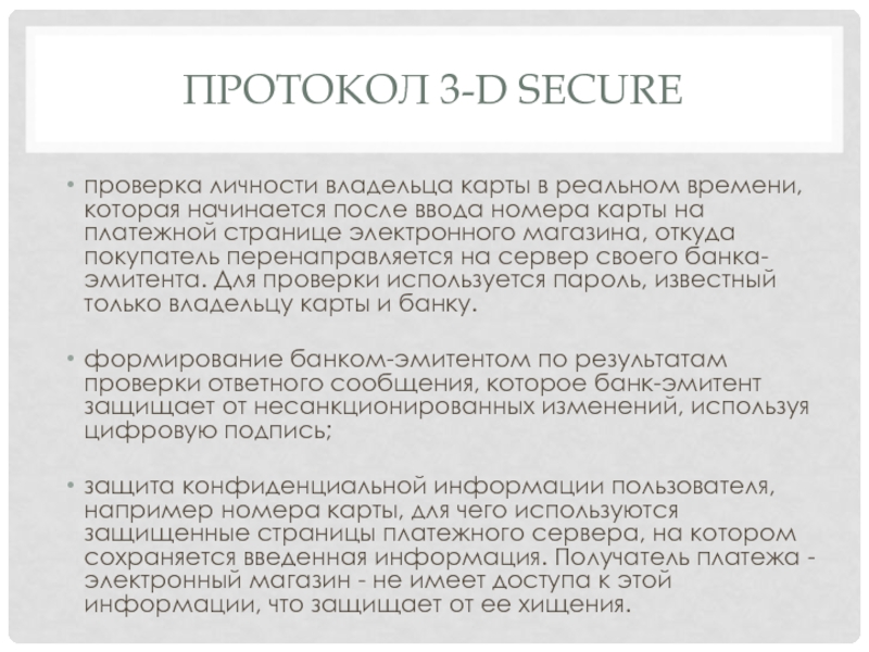 Слайд 24ПРОТОКОЛ 3-D SECURE