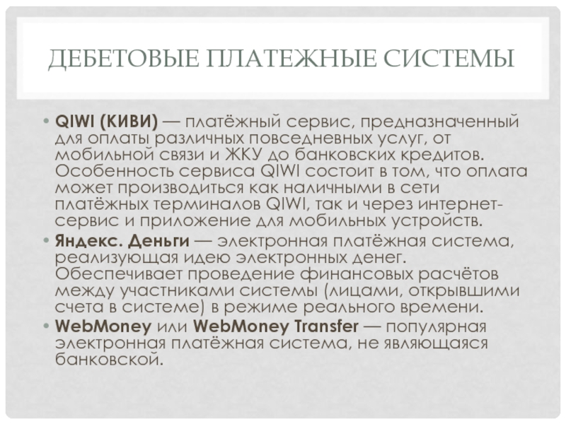 Слайд 10ДЕБЕТОВЫЕ ПЛАТЕЖНЫЕ СИСТЕМЫ