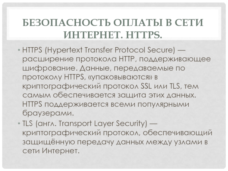 Слайд 23БЕЗОПАСНОСТЬ ОПЛАТЫ В СЕТИ ИНТЕРНЕТ. HTTPS.