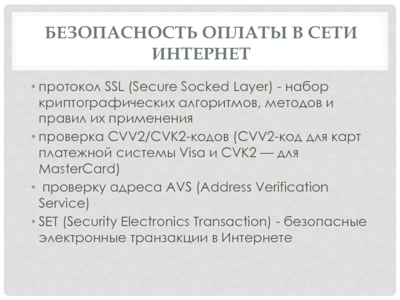 Слайд 22БЕЗОПАСНОСТЬ ОПЛАТЫ В СЕТИ ИНТЕРНЕТ