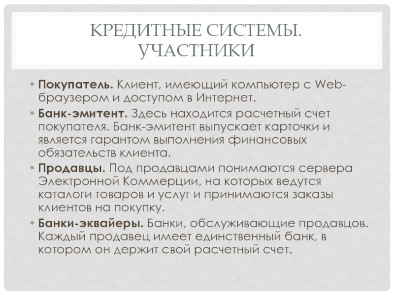 Слайд 13КРЕДИТНЫЕ СИСТЕМЫ.