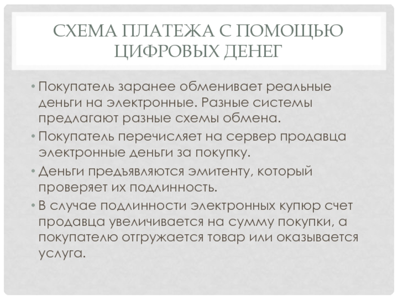 Слайд 16СХЕМА ПЛАТЕЖА С ПОМОЩЬЮ ЦИФРОВЫХ ДЕНЕГ