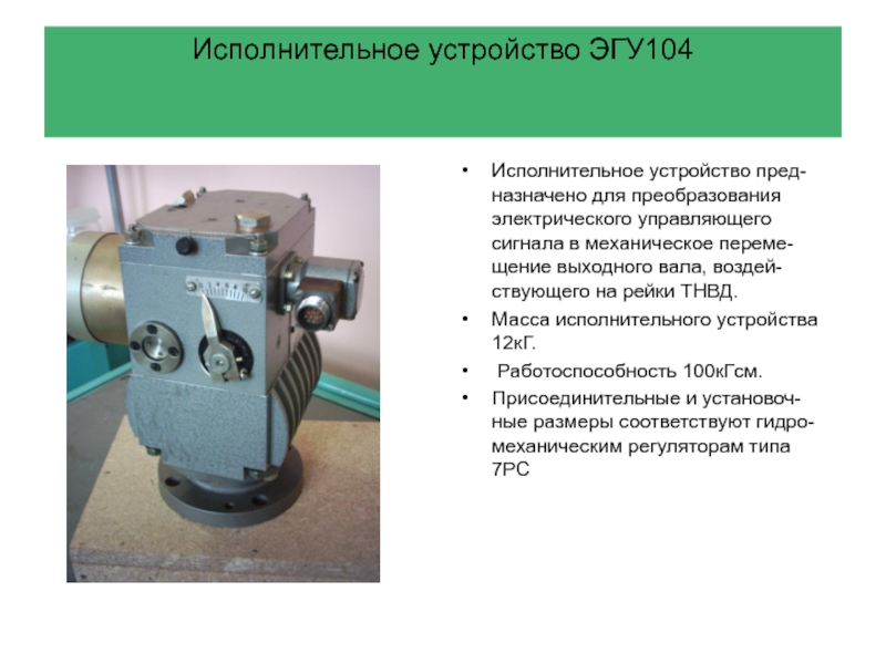 Исполнительное устройство пред-назначено для преобразования электрического управляющего сигнала в