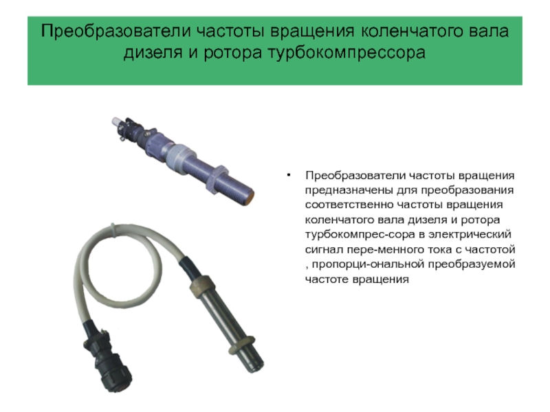 Слайд 7Преобразователи частоты вращения коленчатого вала дизеля и ротора турбокомпрессора