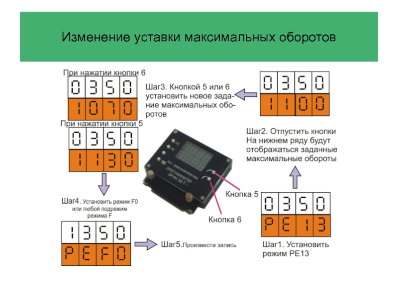 Слайд 31Изменение параметра регулятора в режиме 21 по верхнему ряду индикаторов