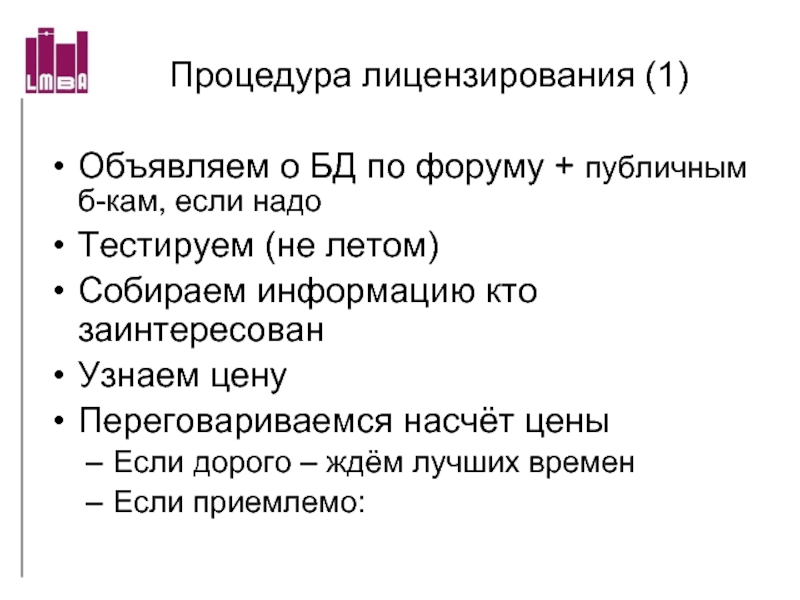 Какие БД лицензируем