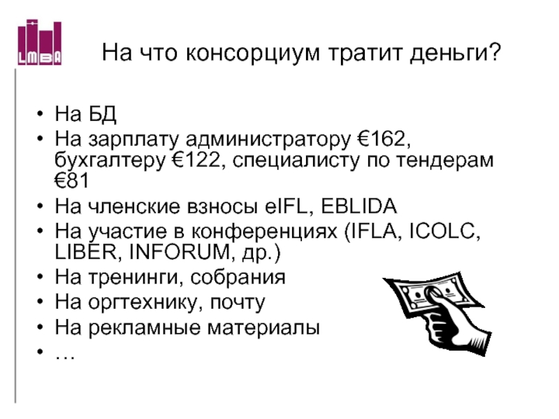 Слайд 51На что консорциум тратит деньги?