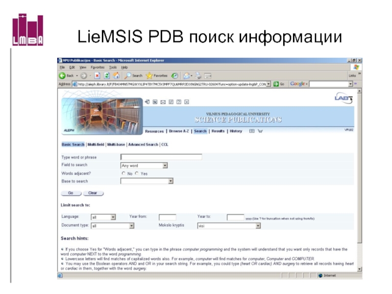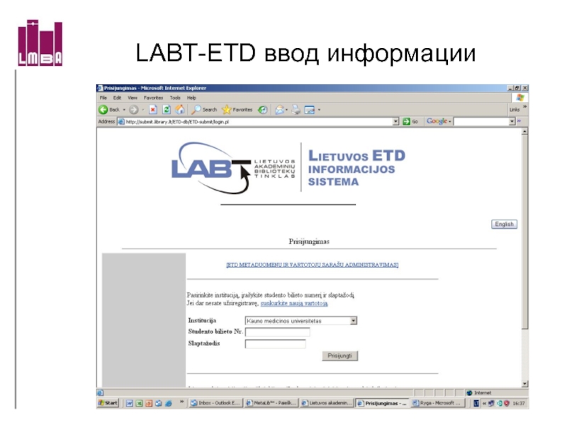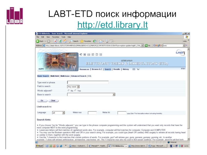 Слайд 18LABT-ETD поиск информации http://etd.library.lt