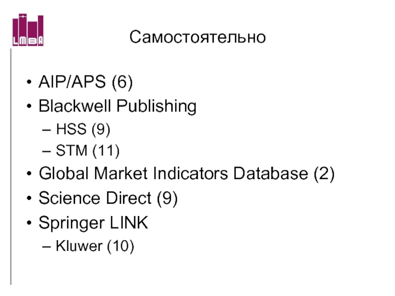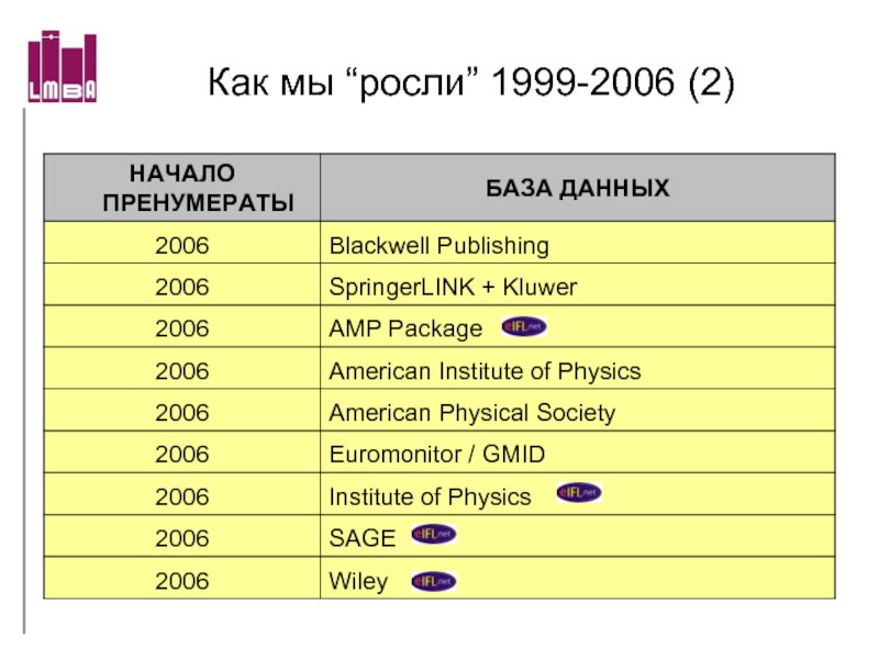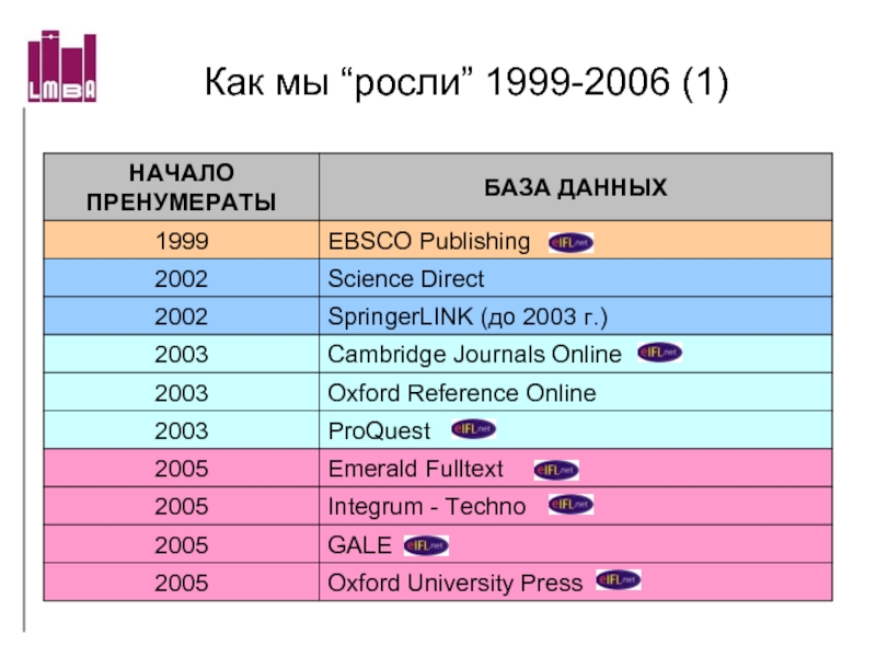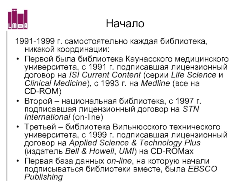 университета, с 1991 г. подписавшая лицензионный договор на ISI Current Content (серии Life Science и Clinical Medicine), с 1993 г. на Medline (все на CD-ROM)