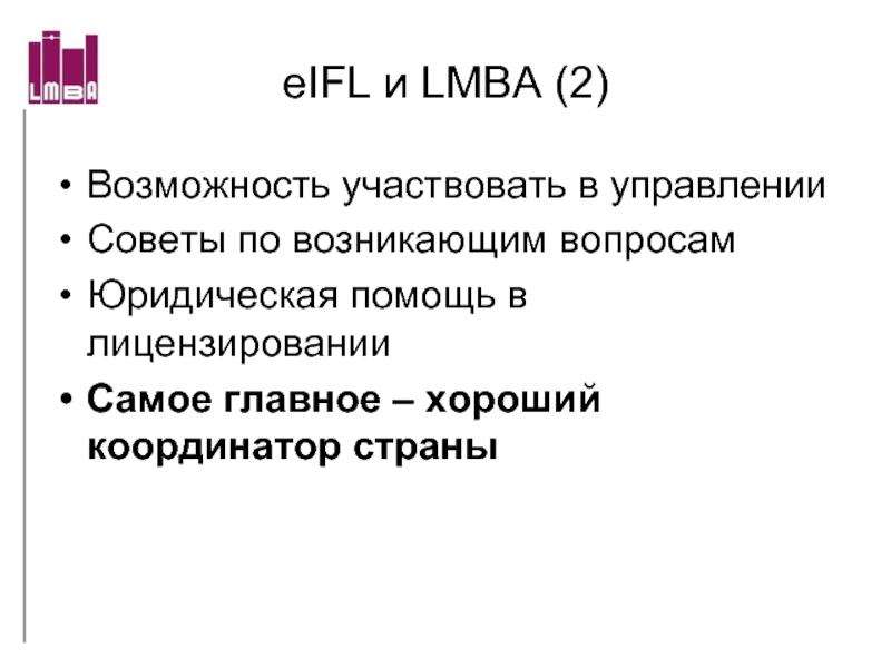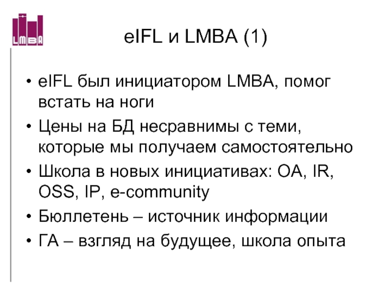 eIFL был инициатором LMBA, помог встать на ноги