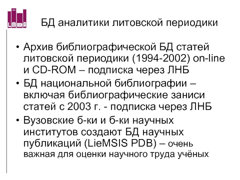 Слайд 10БД аналитики литовской периодики