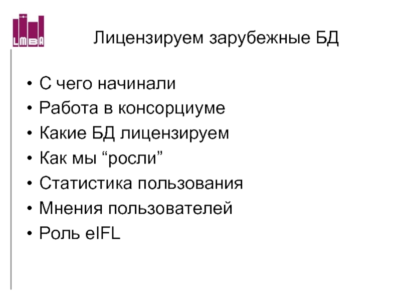 Слайд 27Лицензируем зарубежные БД