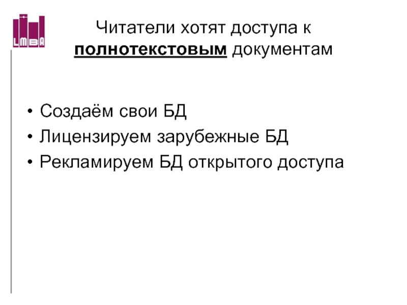Слайд 15Читатели хотят доступа к полнотекстовым документам