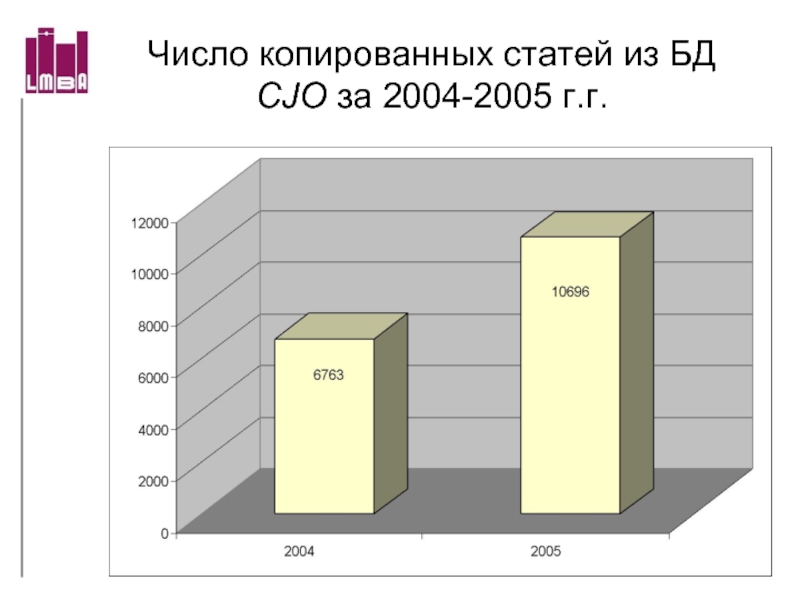 Слайд 64Число копированных статей из БД CJO за 2004-2005 г.г.