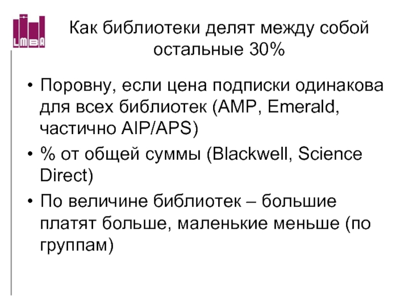 Слайд 48Как библиотеки делят между собой остальные 30%