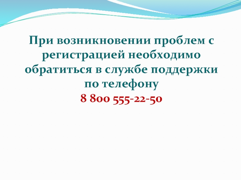 Слайд 11При возникновении проблем с регистрацией необходимо обратиться в службе поддержки