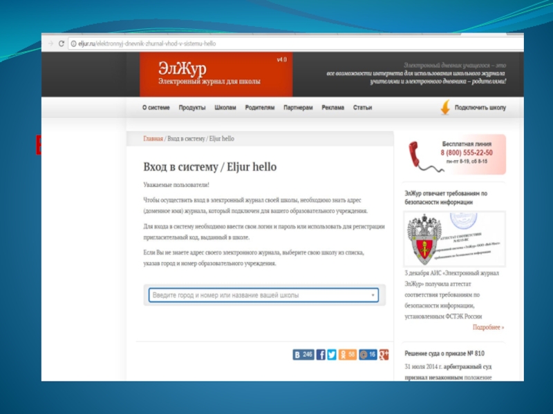 Электронный дневник Элжур. Регистрация (для родителей и школьников) презентация